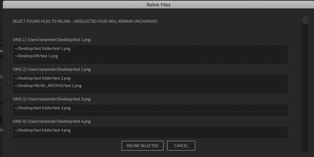 Optionally scans for all missing footage, or works on selected items only. Checks image sequence duration against the missing source, and displays matched results for each missing file. Works on PC and MAC